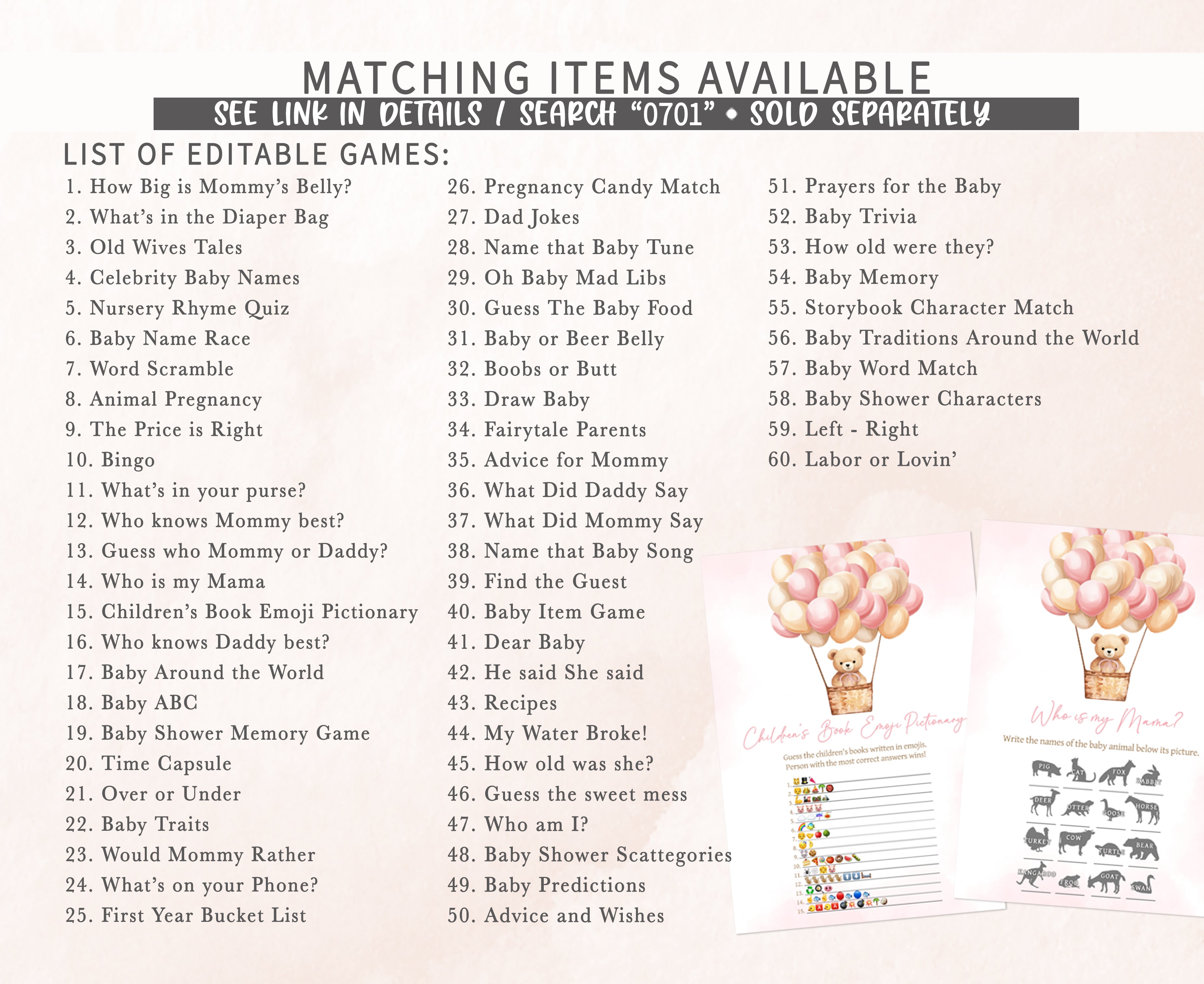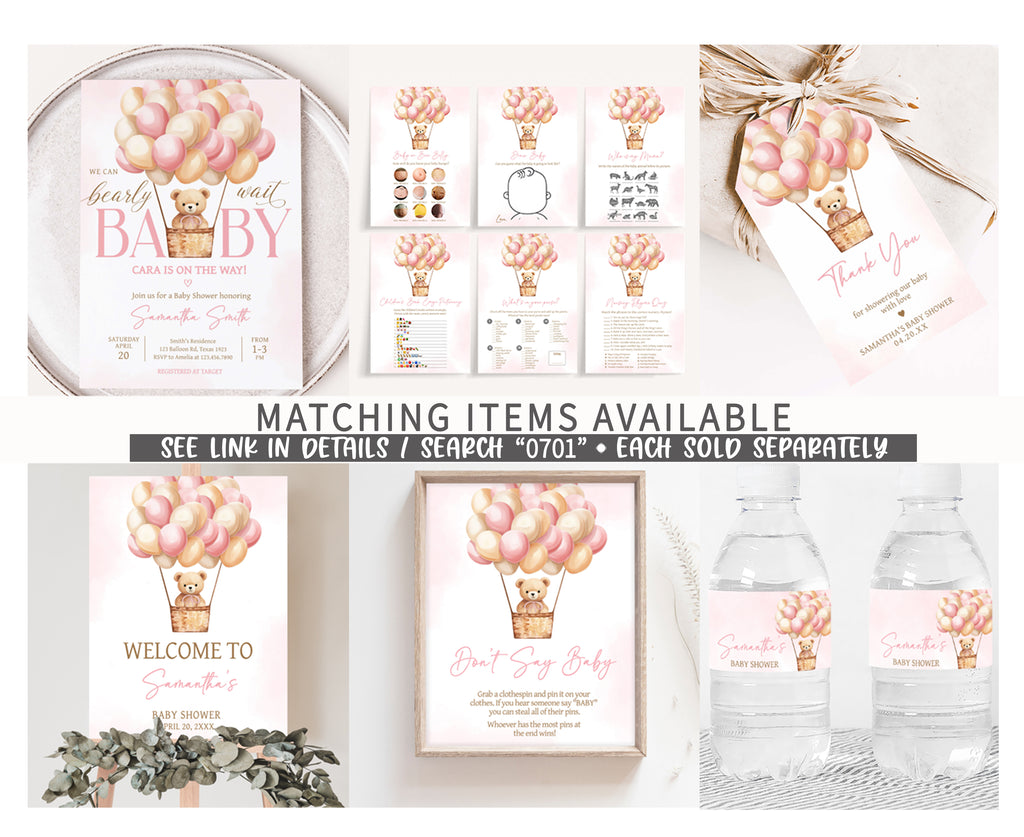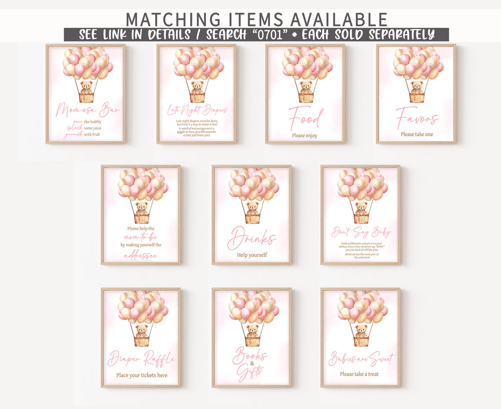 ➡ Visit this link for all the matching items for Girl Bear Hot Air Balloon Baby Shower theme: