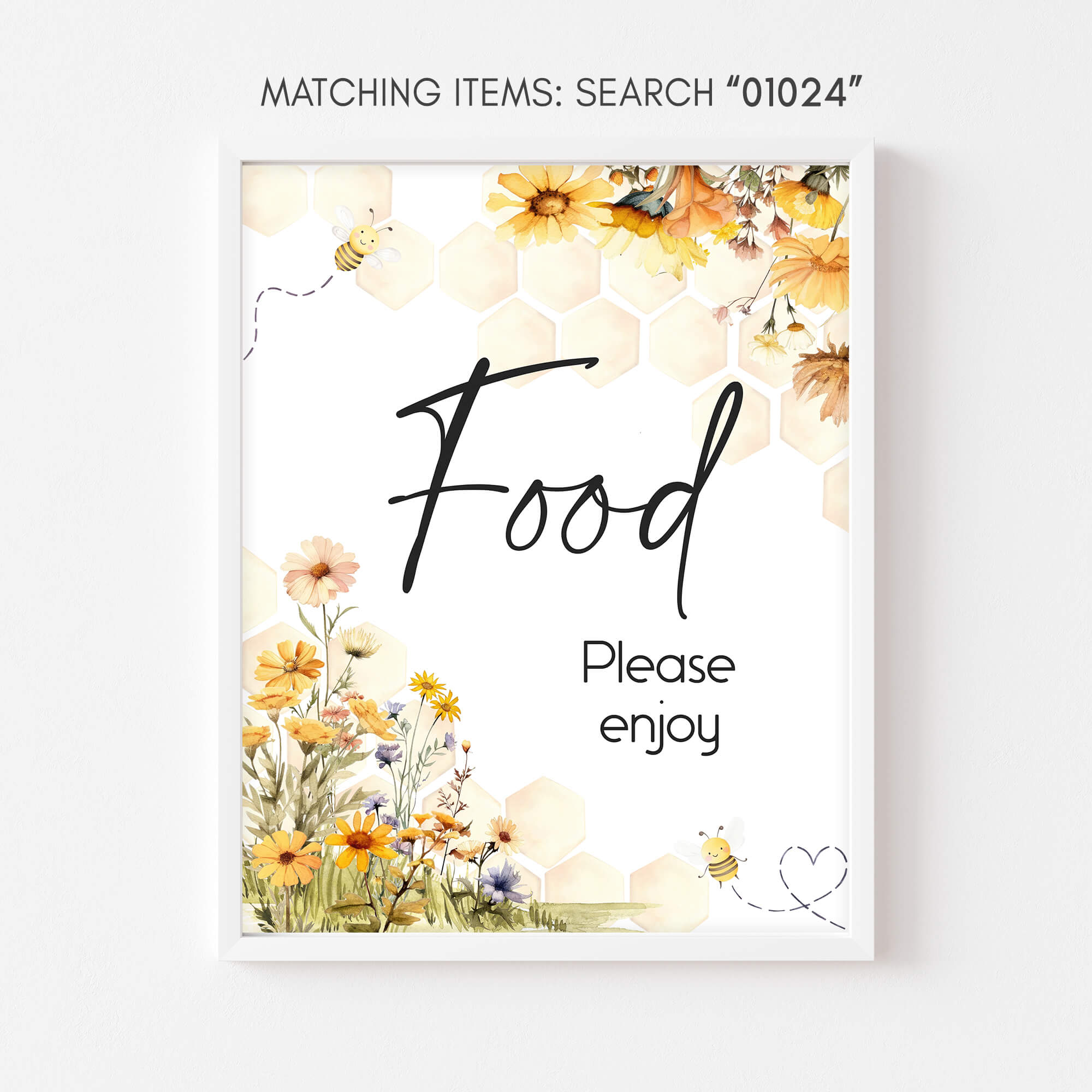 Craft an ideal atmosphere for your Floral Bee Baby Shower Party using our enchanting Spring Honey Bee Baby Shower Food Table Sign Printable. These prints not only add a touch of charm but also serve as helpful guides, directing guests to various Gender Neutral Honeycomb party sections with their delightful designs.