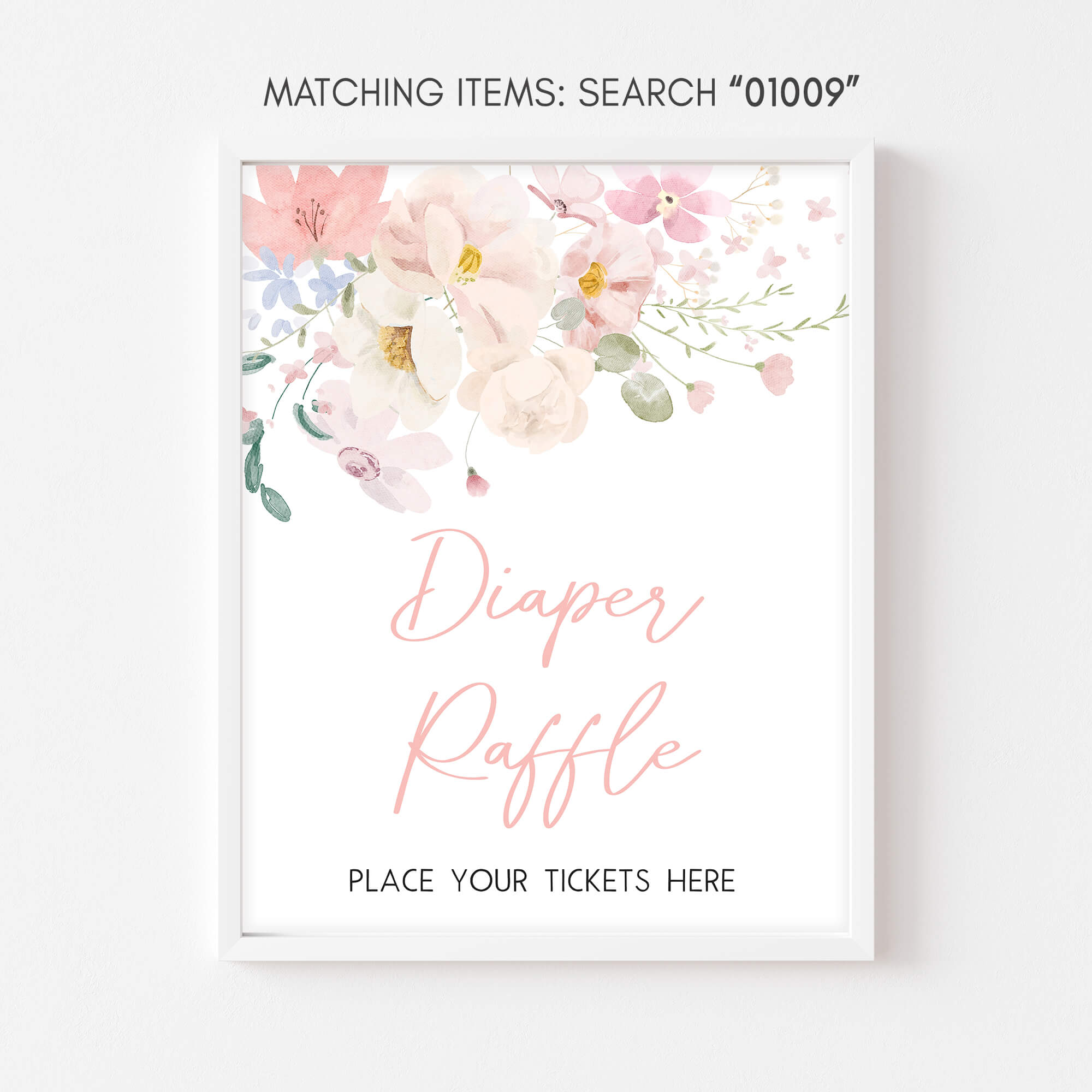Craft an ideal atmosphere for your Pink Floral Baby Shower Party using our enchanting Girl Baby Bloom Baby Shower Diaper Game Sign Printable. These prints not only add a touch of charm but also serve as helpful guides, directing guests to various Watercolor Flower party sections with their delightful designs.