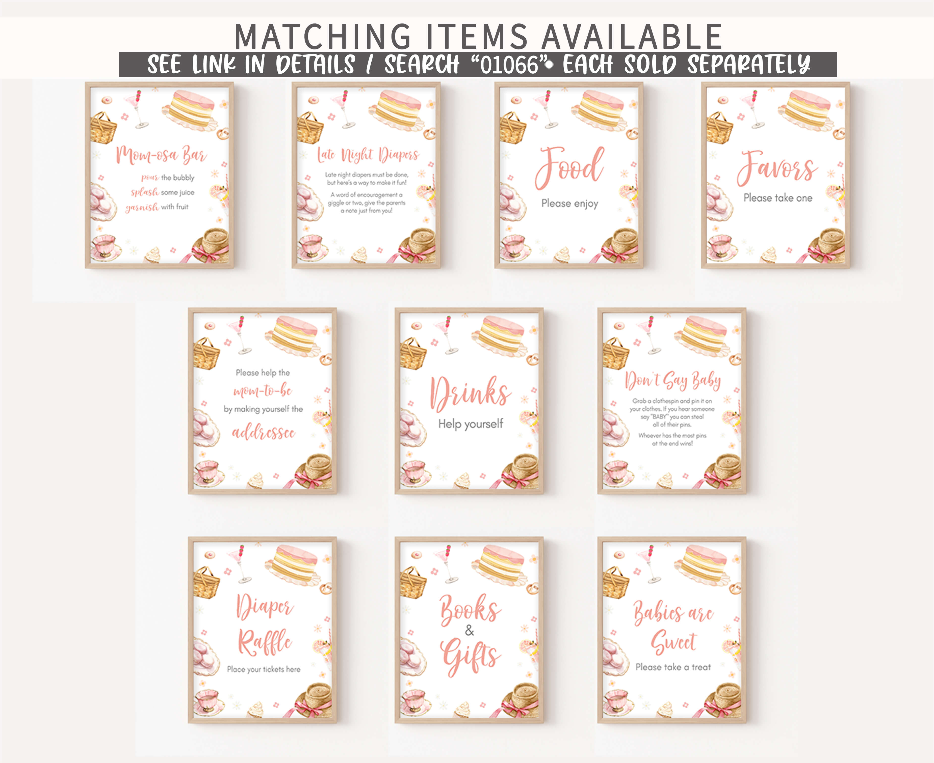 ➡ Visit this link for all the matching items for Girl Brunch Baby Shower theme: