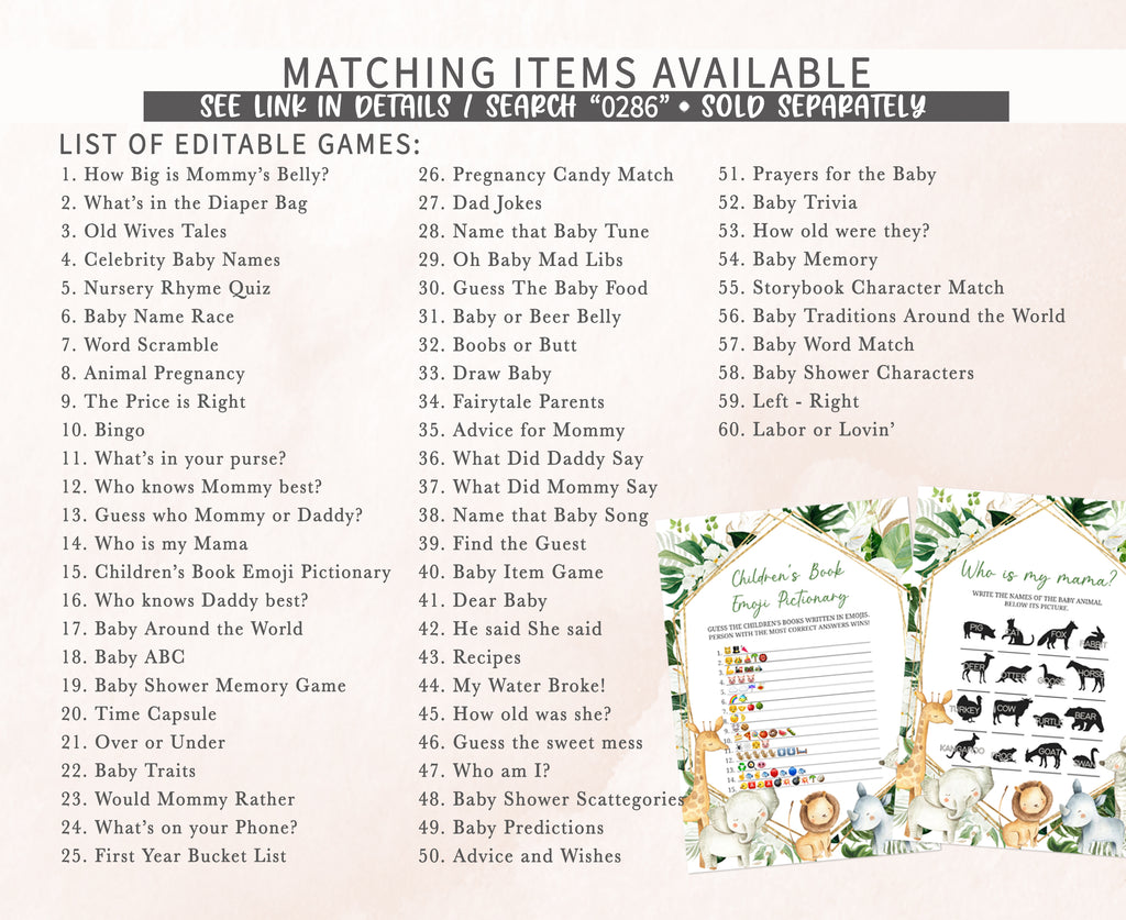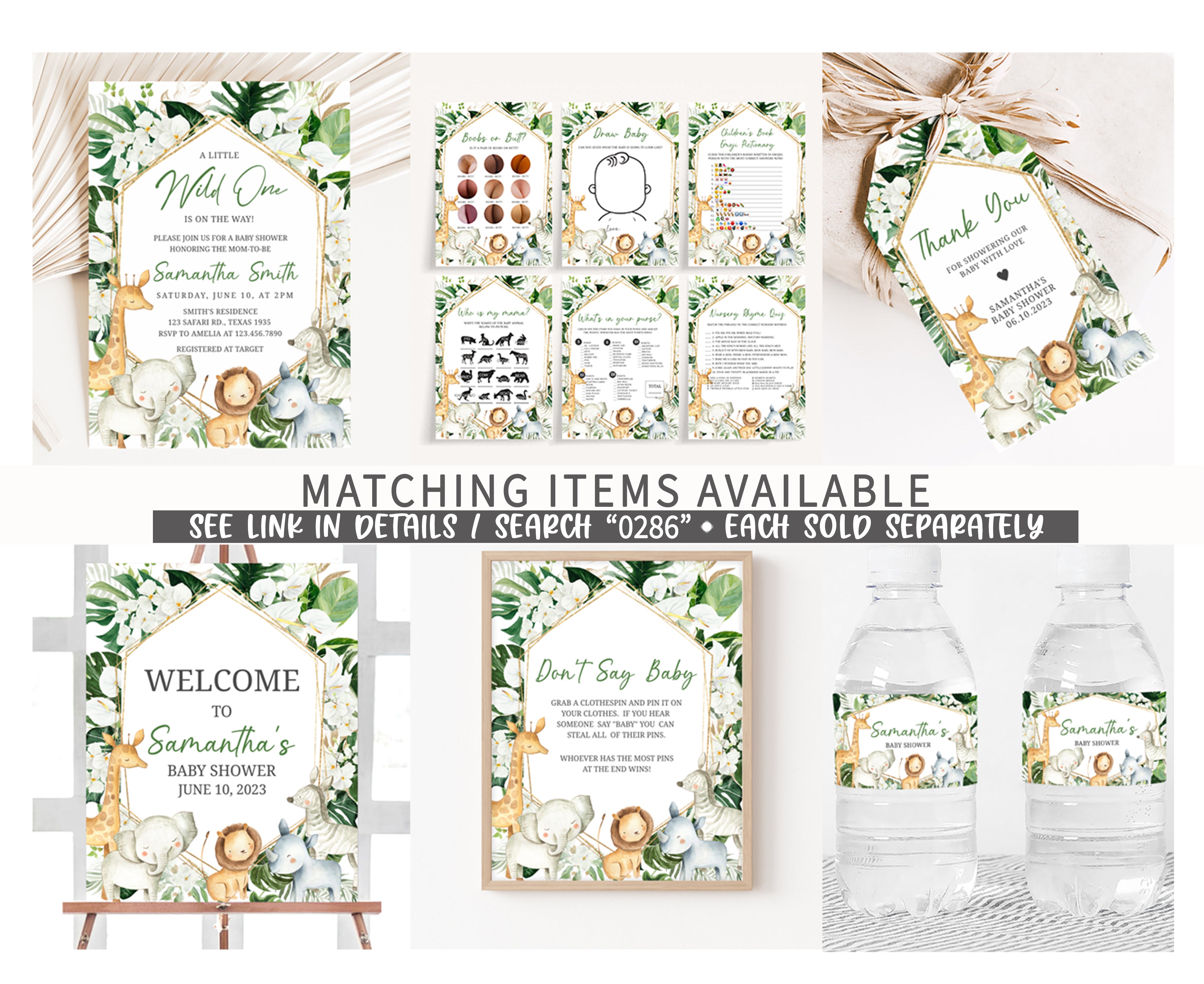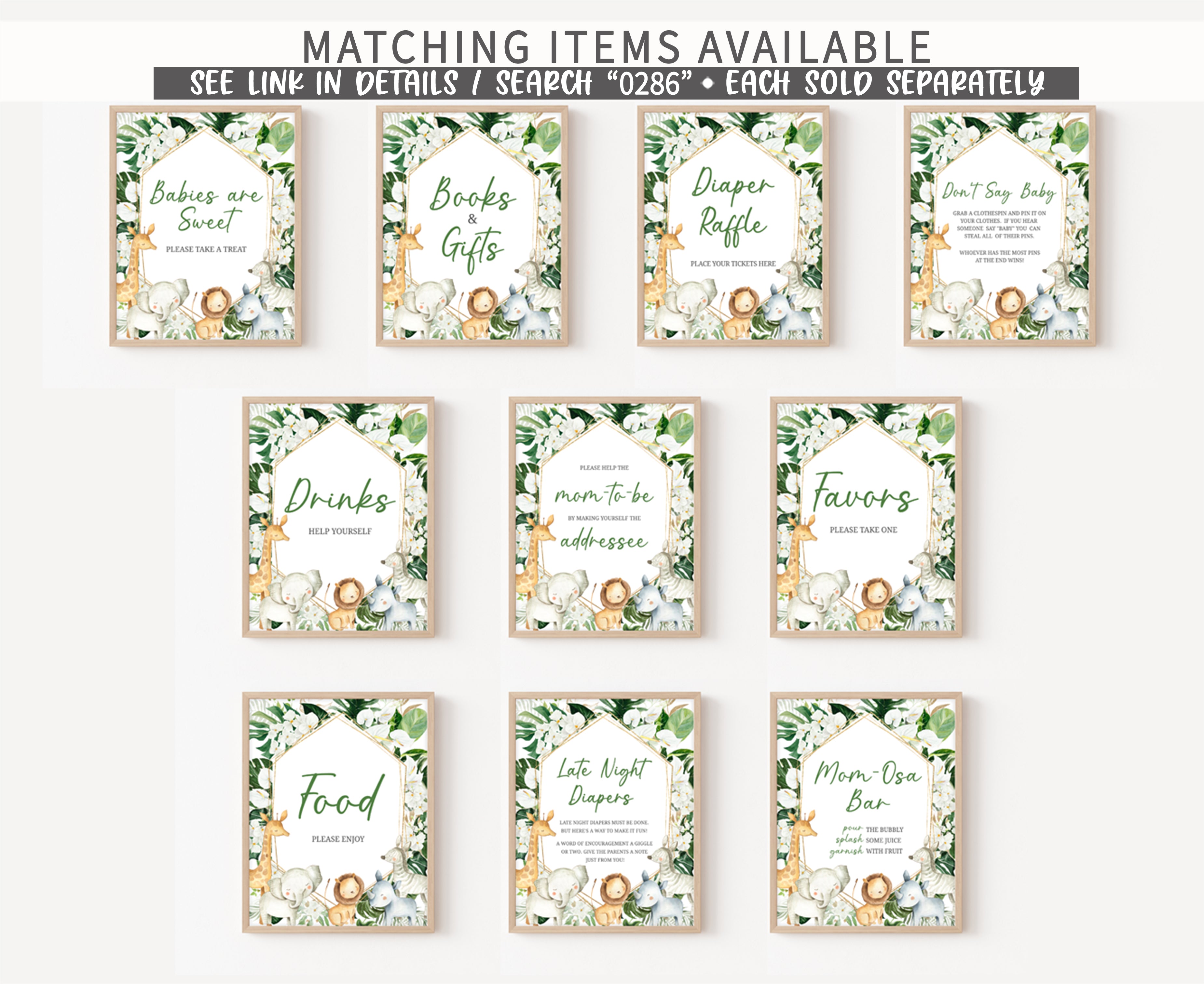 ➡ Visit this link for all the matching items for Gender Neutral Jungle Animals Baby Shower theme: