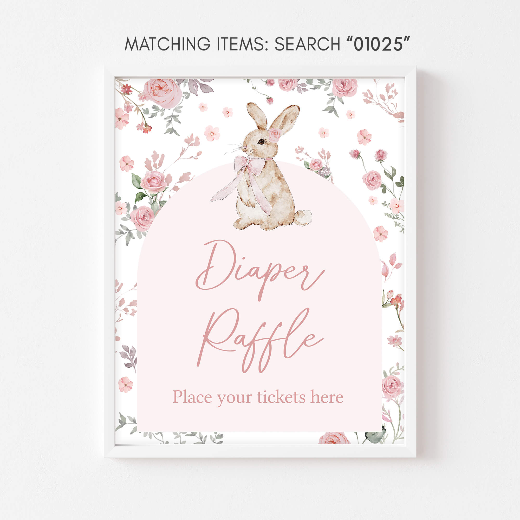 Craft an ideal atmosphere for your Girl Spring Baby Shower Party using our enchanting Floral Boho Bunny Baby Shower Diaper Game Sign Printable. These prints not only add a touch of charm but also serve as helpful guides, directing guests to various Pink Floral Rabbit party sections with their delightful designs.