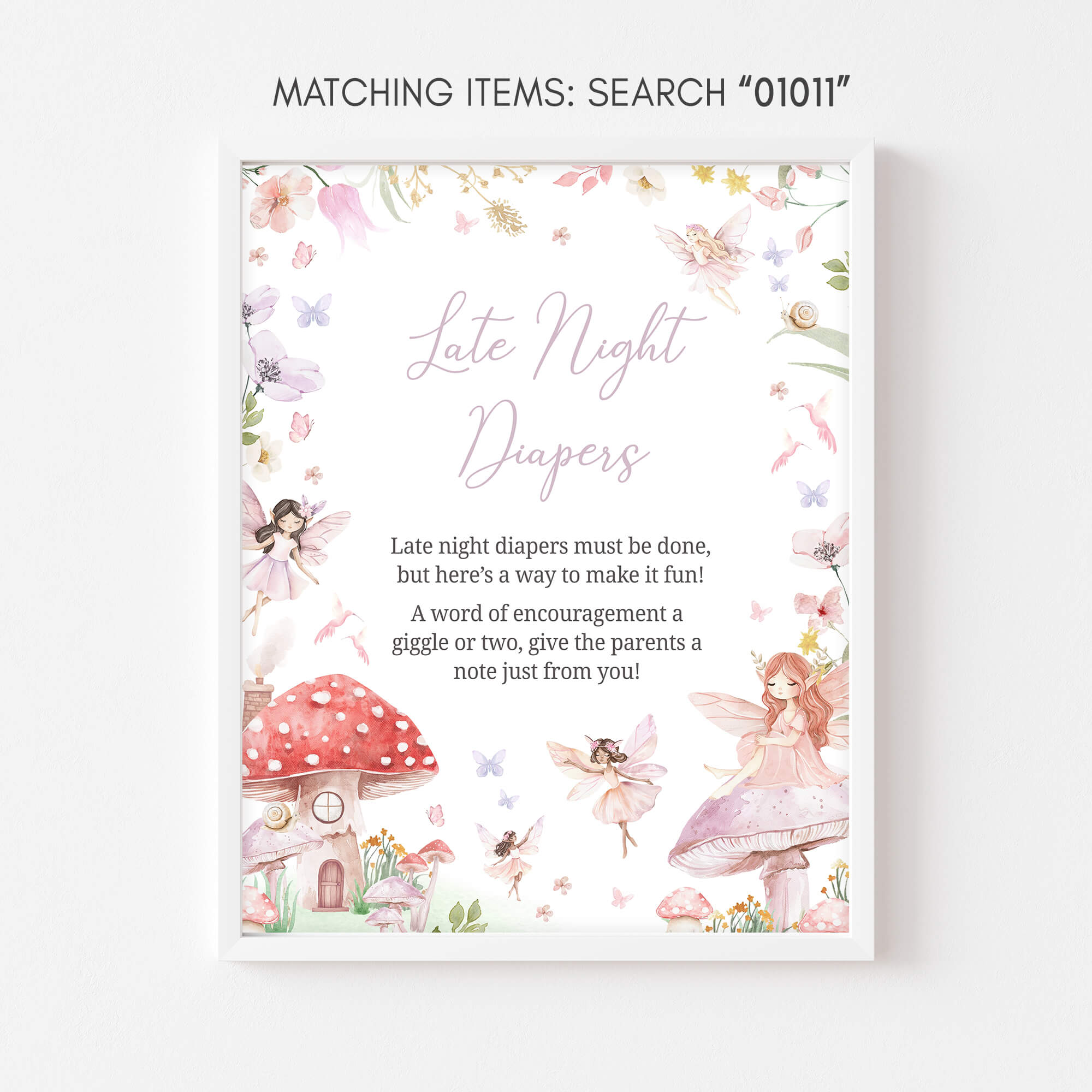 Craft an ideal atmosphere for your Enchanted Garden Baby Shower Party using our enchanting A Little Fairy is on Her Way Baby Shower Diaper Thoughts Sign Printable. These prints not only add a touch of charm but also serve as helpful guides, directing guests to various Floral Forest Fairy party sections with their delightful designs.