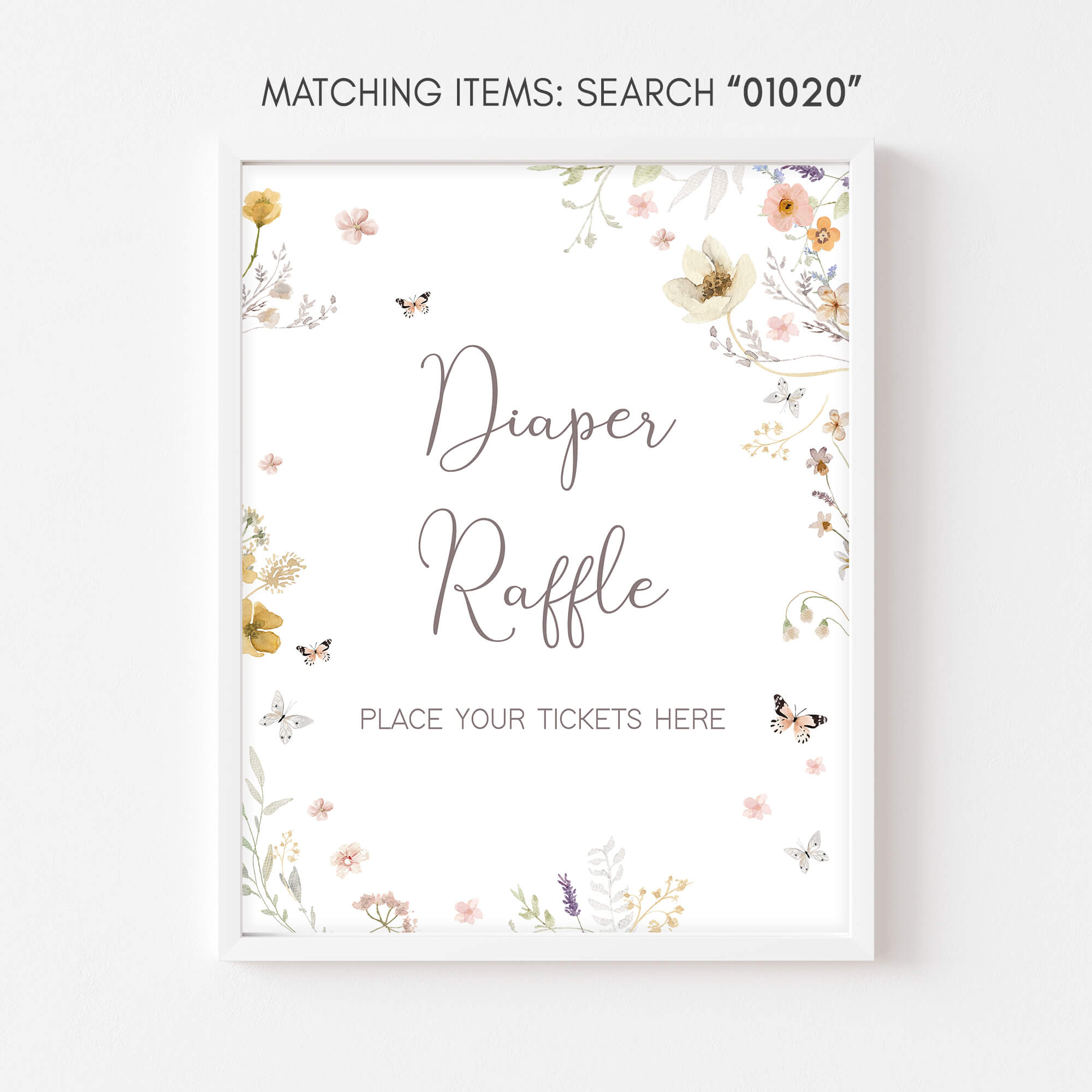 Craft an ideal atmosphere for your Boho Wildflower Baby Shower Party using our enchanting Spring Butterfly Floral Baby Shower Diaper Game Sign Printable. These prints not only add a touch of charm but also serve as helpful guides, directing guests to various Little Wildflower on the Way party sections with their delightful designs.