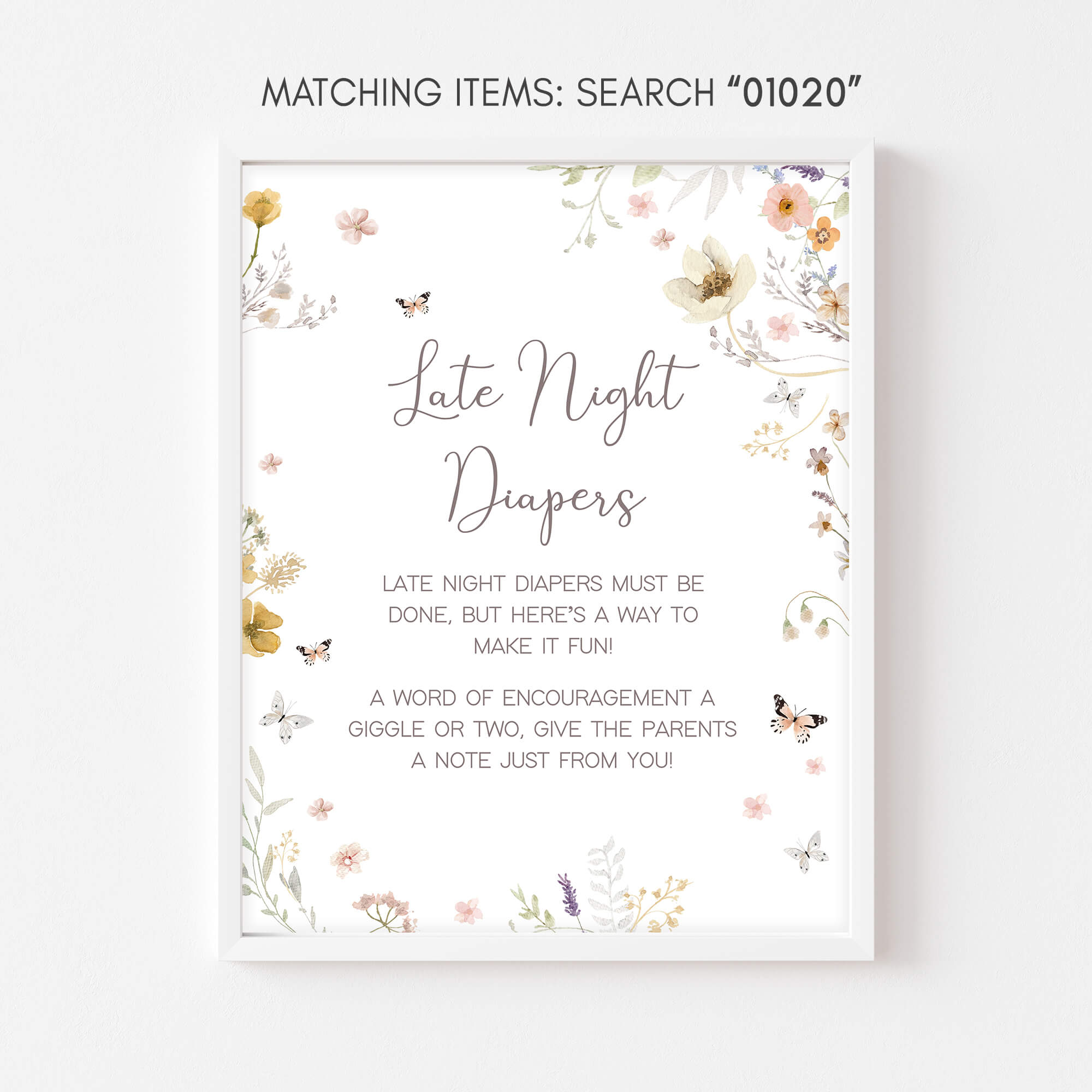 Craft an ideal atmosphere for your Boho Wildflower Baby Shower Party using our enchanting Spring Butterfly Floral Baby Shower Diaper Thoughts Sign Printable. These prints not only add a touch of charm but also serve as helpful guides, directing guests to various Little Wildflower on the Way party sections with their delightful designs.