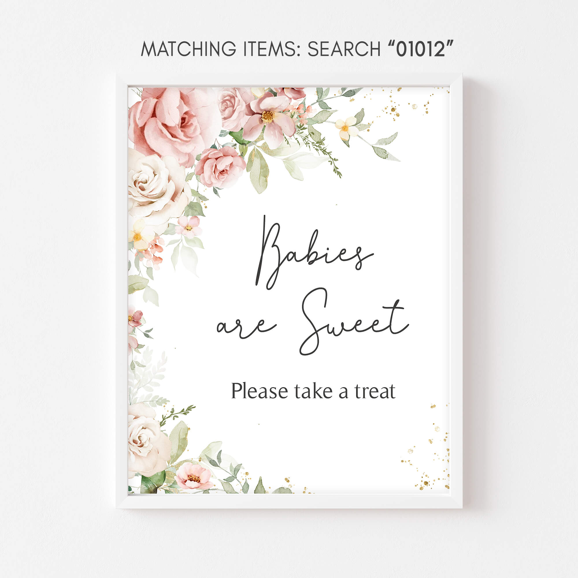 Craft an ideal atmosphere for your Spring Flower Baby Shower Party using our enchanting Baby Girl is on Her Way Baby Shower Dessert Sign Printable. These prints not only add a touch of charm but also serve as helpful guides, directing guests to various Blush Pink Floral Spring party sections with their delightful designs.