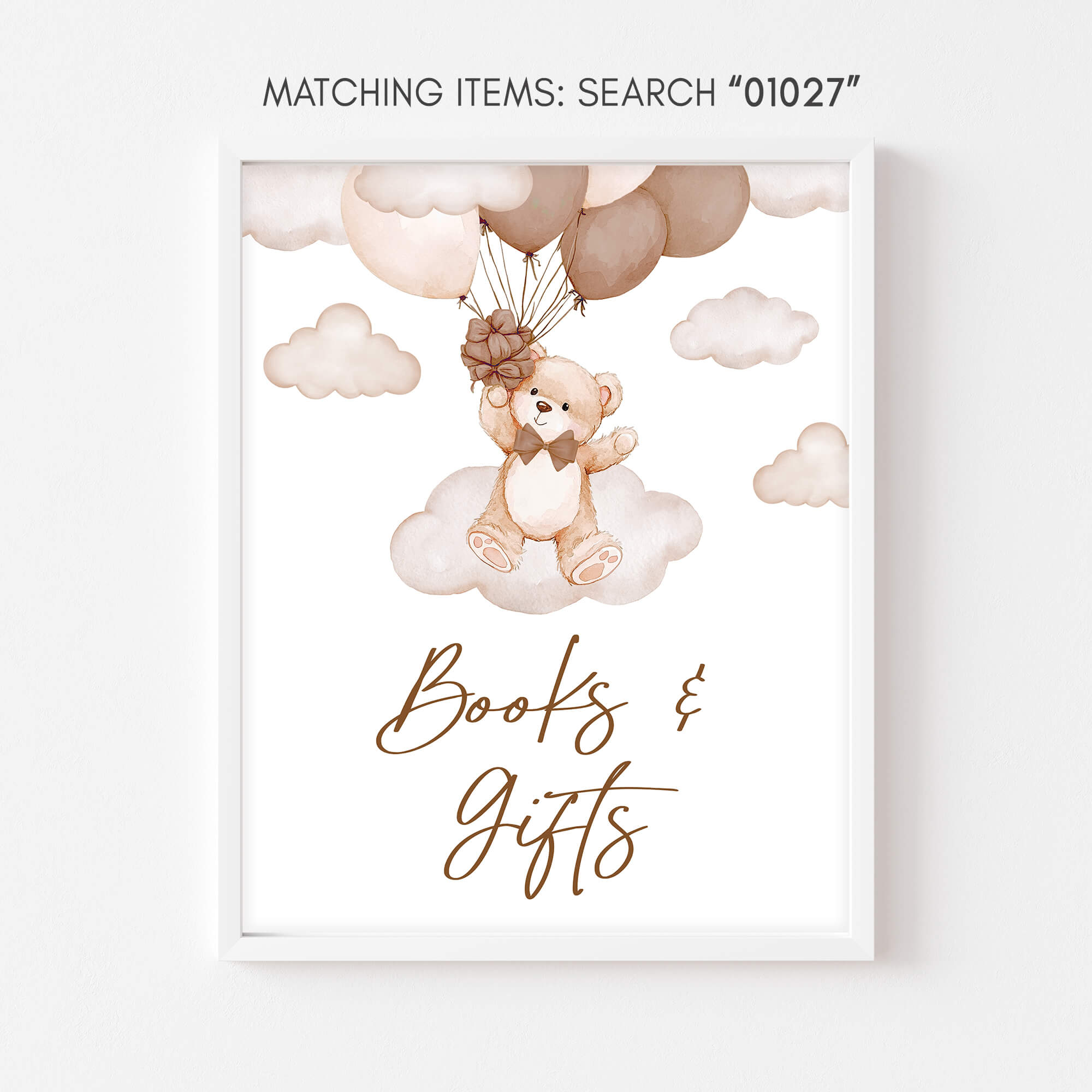 Craft an ideal atmosphere for your Bear Cloud Baby Shower Party using our enchanting We Can Bearly Wait Baby Shower Books and Gifts Sign Printable. These prints not only add a touch of charm but also serve as helpful guides, directing guests to various Brown Balloon Bear party sections with their delightful designs.