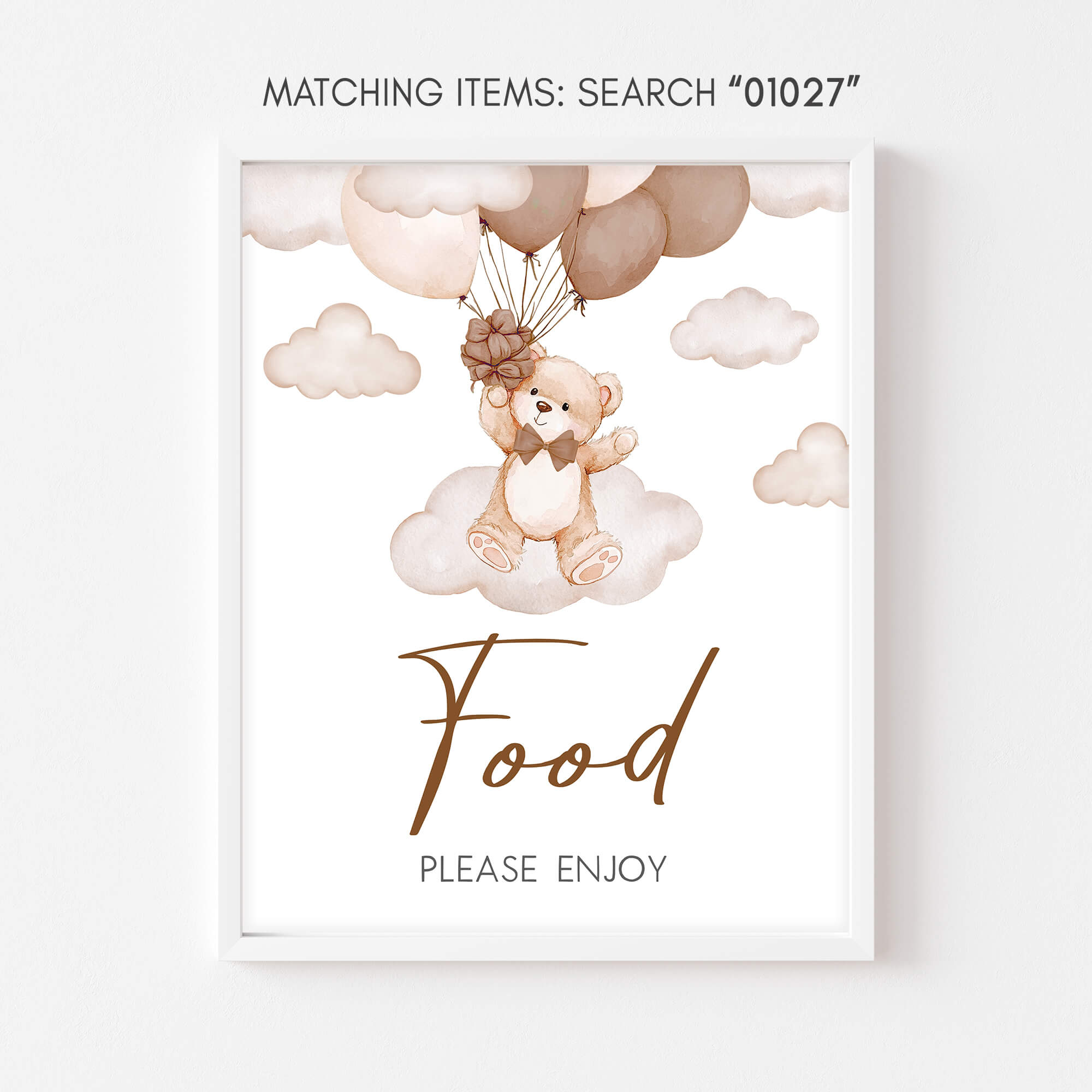 Craft an ideal atmosphere for your Bear Cloud Baby Shower Party using our enchanting We Can Bearly Wait Baby Shower Food Table Sign Printable. These prints not only add a touch of charm but also serve as helpful guides, directing guests to various Brown Balloon Bear party sections with their delightful designs.